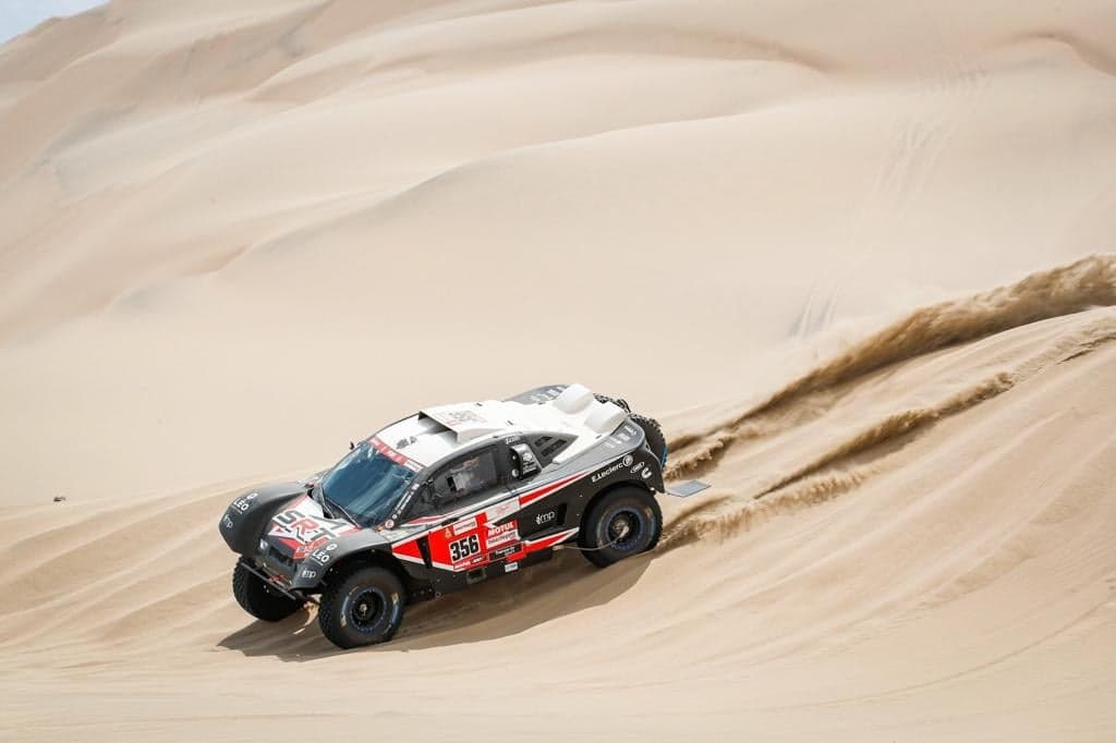 Malgré le confort sommaire, Valentin dort bien et il aura besoin de toute l’énergie disponible pour boucler cette longue étape. Comme la veille, le début de chrono se passe bien malgré un cordon de dune compliqué bien négocié par Mika et Valentin et un quasi tonneau rattrapé de justesse. Valentin a le sentiment de faire le job mais les ennuis s’accumulent :