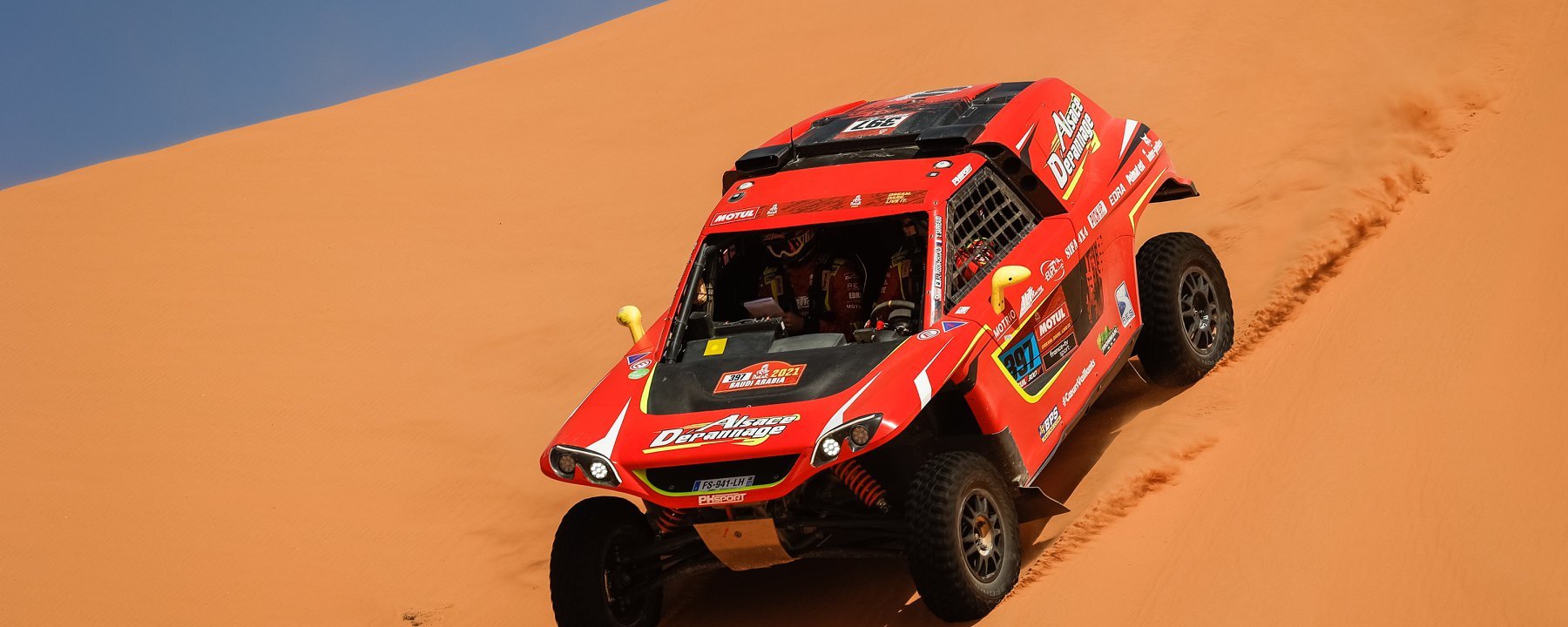 Jamais 2 sans 3. Le dicton avait encore vu juste. Pour la 3ème épreuve, Jean Luc et Valentin sont de nouveau dans le bon wagon, ce qui leur permet même de grimper sur le podium provisoire des T3. Au termes des 403km éprouvants de cette boucle autour de Wadi Ad-Dawasir au sud du pays, les pensionnaires du JLT Racing ont exploité à merveille les capacités du Zephyr et réalise le 4ème temps à 14min35 du scratch et passe Ekström (excusez du peu !) pour le gain de la 3ème place au général: