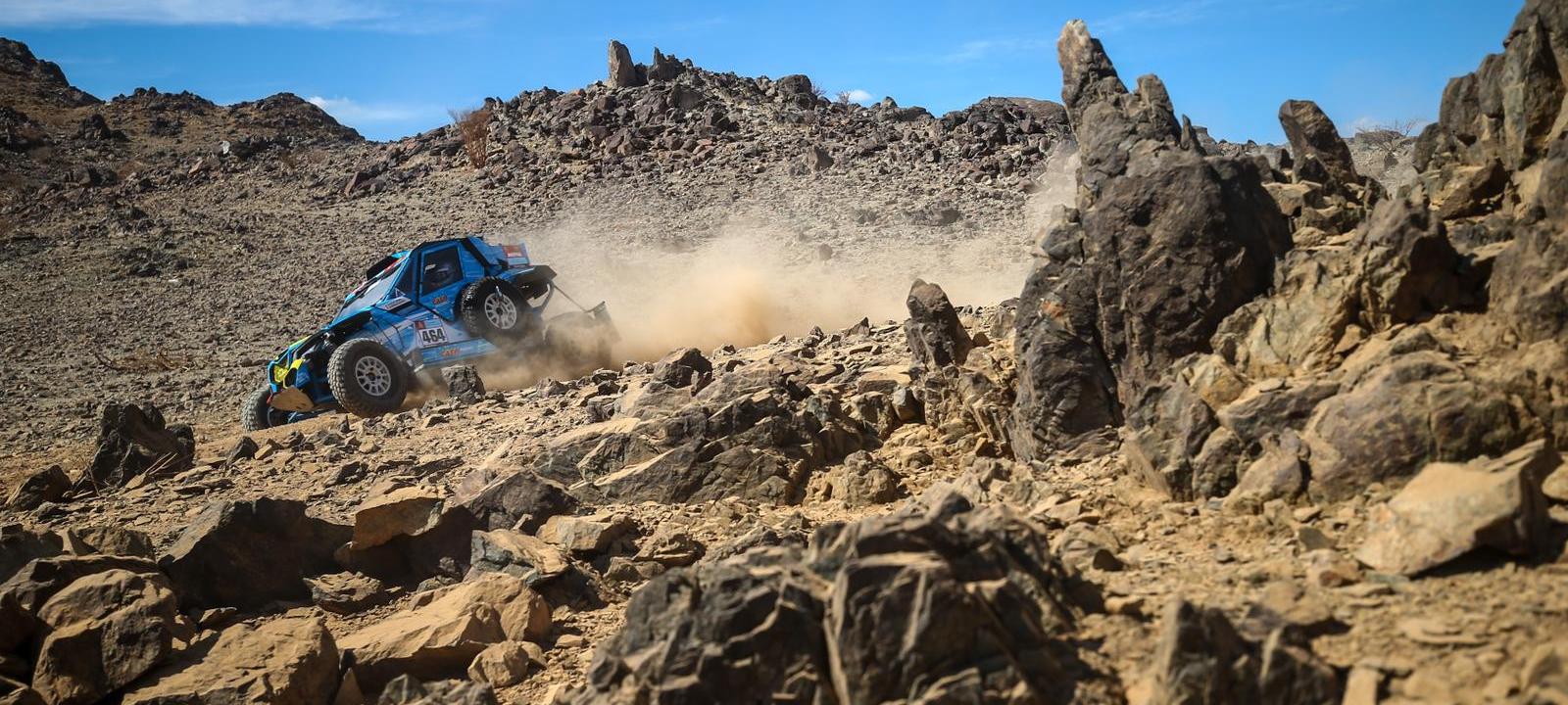 » Le réveillon du jour de l’An sera bref car le départ du bivouac sera donné à 6h du matin pour une mise en jambe de 250km de liaison. Un court prologue de 19km nous attend mais il lance aussi la course et il ne faut donc pas le négliger. S’en suivra 500km de liaison pour rejoindre Haïl. Autant dire une longue journée de buggy mais une bonne occasion de se familiariser avec notre nouvel outil et mon nouveau pilote Bruno. »