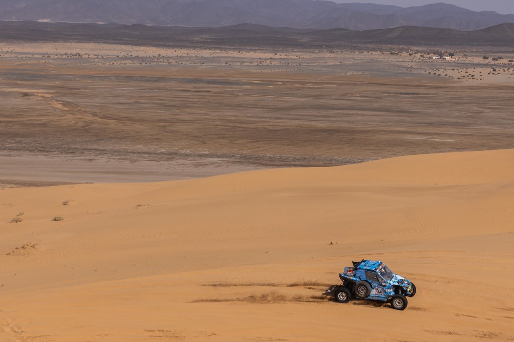 La 8ème ES était placée sous le signe du sable, car les 830 kilomètres du jour ont emmené la caravane plein Sud entre Al Dawadimi et Wadi As-Dawasir. C’est toujours au cœur du royaume et dans la Province de Riyadh, qu’une deuxième spéciale consécutive de près de quatre cent kilomètres attendait les concurrents. Au menu, 24% de dunes, la plus importante proportion depuis le début du rallye. C’est d’abord par le Nafud (Désert) as Surrah que la spéciale a débutée par des dunes copieuses dans lesquelles certains concurrents ont dû s’y reprendre à plusieurs reprises avant de vaincre leurs sommets, à parfois près de 1000 mètres d’altitude.