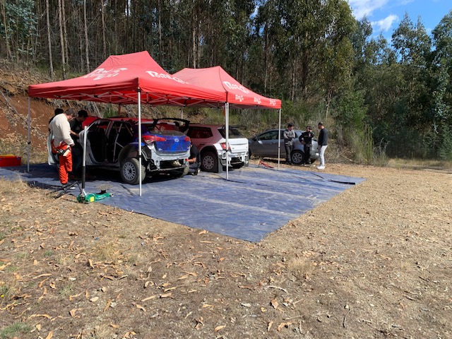 Autant que la pluie qui s’est abattue une bonne partie de la nuit de samedi à dimanche, la première fois depuis le début de l’année ! Pour nous c’est du pain béni pour cette dernière étape, autant pour notre position sur la route moins désavantageuse mais aussi pour avoir l’opportunité de rouler sur un terrain type Wales, gras mais dur. On a une crevaison lente dans la 12 à 5km de l’arrivée avant que le pneu ne déchappe pour de bon. Alors que tout allait bien à l’assistance, que tout le monde était calme, subitement tout dérape à 5min de pointer. Je vois 6 personnes autour d’une roue, un écrou a grippé sur le goujon et impossible de le faire bouger. Ils sortent la meuleuse, l’assistance devient un vrai feu d’artifice, et ils parviennent à le retirer mais ils en regrippent un second ! Ils remontent tant bien que mal mais nous préviennent qu’il ne va pas falloir crever. Point positif, un amortisseur décelé défectueux a pu être changé, au clics prêts que j’avais en charge de faire. Au départ de la 13, je contrôle la fameuse roue est en fait il n’y avait que 2 écrous serrés, les autres ne l’étaient pas vraiment, pas très rassurant avant de prendre le départ. J’ai remis un bon coup de dynamo et croisé tous mes doigts … A 200m du pointage, on a une soudaine perte de puissance. Ce que l’on pensait (espérait) n’être qu’une énième ouverture de pop off allait finalement se confirmer une fois lancé en spéciale, on avance plus. A cette vitesse, je joins l’ingé qui me demande simplement de surveiller les T° mais nous pouvons continuer. L’odeur était insoutenable de l’intérieur, un œil sur le rétro et l’autre sur mon iPad.  Sur le routier suivant on se fait un Face Time assistance mais rien de visible donc rebelote dans la 14. Il fallait surtout être alerte que tout ne prenne pas feu. Dernière assistance, on rentre avec 5min de retard. C’est le turbo qui a lâché, tout est changé pour tenter de ramener des points de la Power Stage. On prend un plaisir de fou, on claque le scratch, ce qui termine d’une belle façon cette aventure chilienne, notamment pour l’équipe qui récolte de précieux points. »
