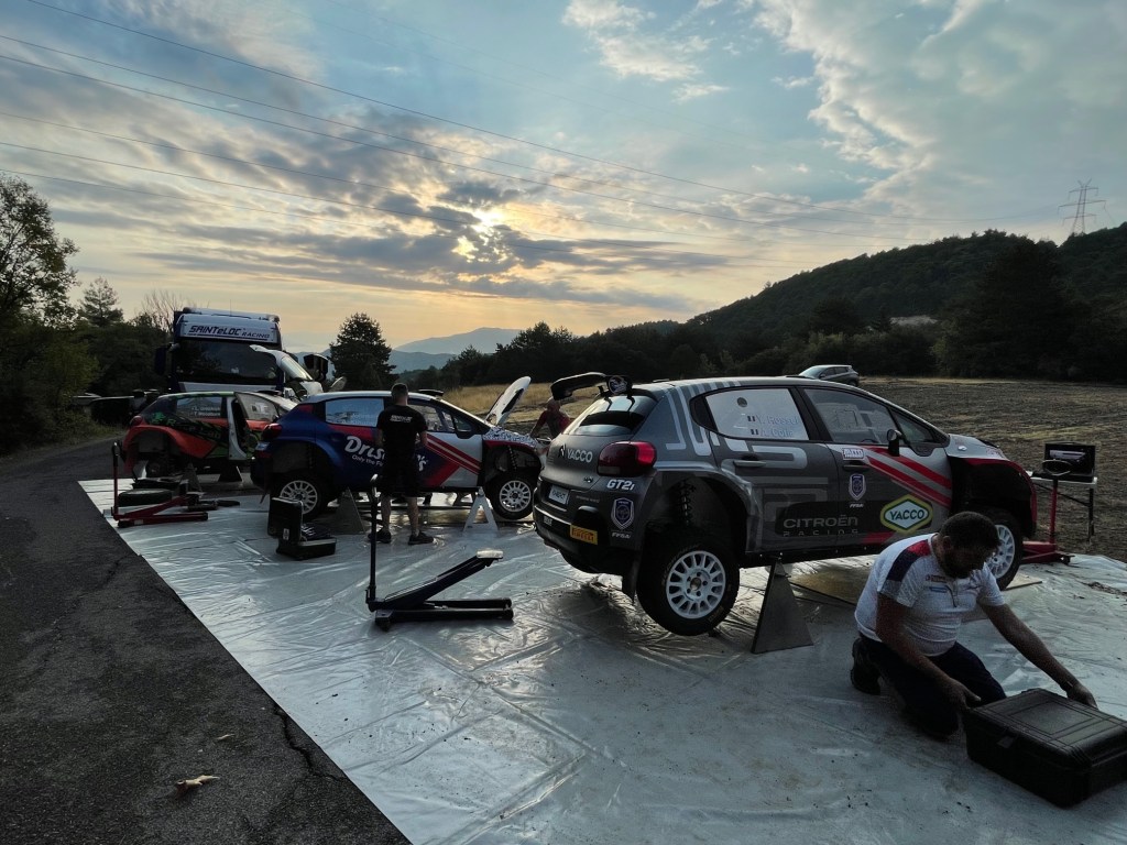 Tout le monde se met en action dès le lendemain pour la séance d’essai des 3 équipages. Si la veille, notre pilote canadien « Crazy Léo » a pu prendre en main sa C3 Rally2 pour la première fois, Rossel et Johnston n’auront que cette opportunité pour se familiariser avec un terrain exigeant. Cette journée était capitale à tout point de vue : aussi bien techniquement, sportivement qu’au niveau relationnelle. On apprend à travailler ensemble, on rencontre ou redécouvre les équipages, on affirme son rôle. Une de mes tâches était d’ailleurs de récupérer tous nos pass, stickers, GPS de recos et bracelets d’accès au parc d’assistance. Avec une trentaine de personne dans le team plus des invités, la seule vérification « COVID » m’aura pris plus d’une heure. De retour à la base, il faut alors soigneusement trier le matériel puis le distribuer à chacun. A 15h, la décision est prise de clôturer la séance car la spéciale est maintenant impraticable. Alors que l’équipe repart sur Lamia, Clément et moi partons avec les équipages tout au sud, à 2h d’ici, à Kineta, pour le début des reconnaissances.