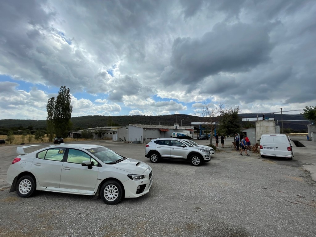 Départ des Hautes Alpes à 5h du matin le samedi 4 Septembre, et direction l’aéroport de Genève où je retrouve Fabrice, mécanicien freelance de la belle époque de Bozian Racing. Présenter mon passeport m’avait manqué mais je n’en aurais même pas l’occasion puisqu’entre mon domicile et mon arrivée en Grèce, personne ne l’a réclamé ! Un comble quand on sait tous les justificatifs obligatoires en lien avec la pandémie. La majorité de l’équipe se retrouve à Athènes pour partir ensuite vers Lamia, à 2h30 au nord. La chaleur est supportable, bien plus que les dernières semaines dont les vestiges des récents incendies défilent sur l’autoroute. Nous profitons de cette première soirée à Kamena Vourla pour faire connaissance des uns et des autres et apprécier la gastronomie grecque.