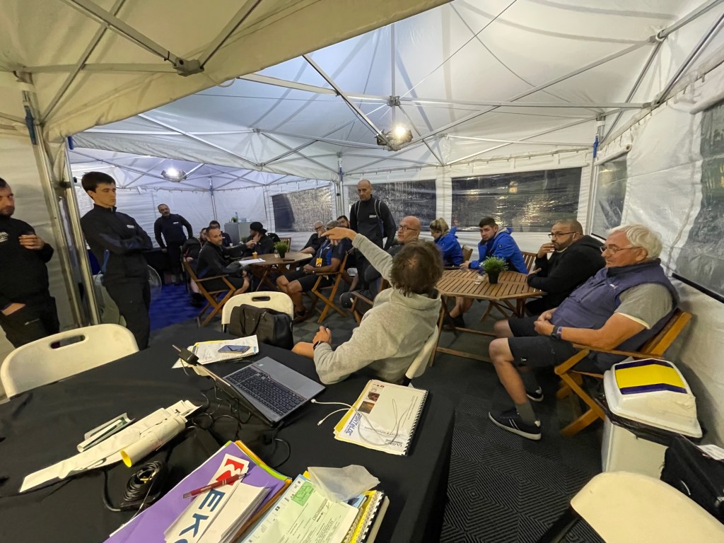 Lorsque la dernière spéciale de la journée est terminée et que le point sur les tâches à faire est envoyé par les équipages, les ingénieurs rassemblent leur équipe pour répartir le boulot. On décide également par quelle voiture on commencera et à quelle heure afin d’organiser l’heure du repas. La « flexi » permet aux équipes de choisir l’heure de début d’assistance (il y a une heure limite de mise en parc fermé) et donc de répartir efficacement les ressources selon le travail à faire. Et accessoirement à l’équipage de gagner de précieuses heures de sommeil puisqu’il peut déjà rentrer à l’hôtel. Mon rôle est alors de récupérer les carnets de pointage, ainsi que la voiture avec son chef mécano, et bien sûr gérer le timing d’assistance. Avec Mathilde, on retire les casques, hans, cagoules, on vide les Camelback, les poubelles, on nettoie ce que l’on peut puis on ramène l’auto dans le temps impartis en parc fermé. Pour clôturer l’étape, j’envoie toujours une photo du carnet pour rassurer le copilote (c’est ce que je voudrais en tout cas !). Une journée typique sur ce rallye de l’Acropole.