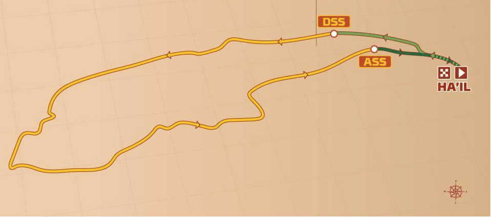 Pour la 5ème étape, les concurrents effectuerons encore une boucle autour de Ha’il avec 373km de secteurs chronométrés et 270km de liaison.