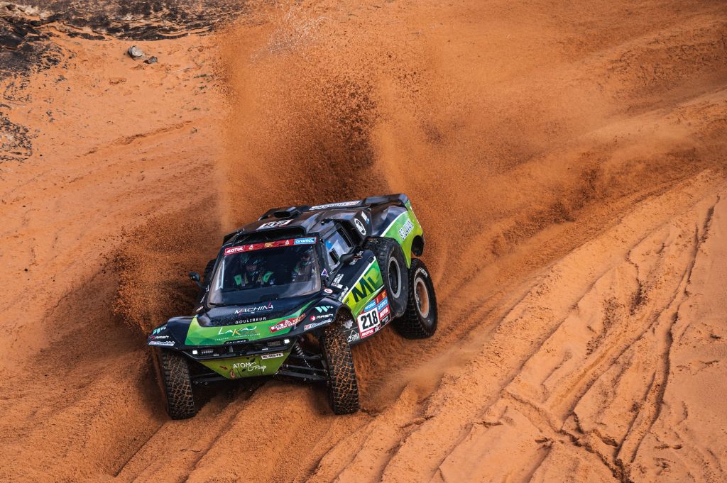 L’équipae #218 réalise un magnifique 12ème temps sur une spéciale finalement moins dévastatrice que les précédentes, ce qui prouve leur compétitivité au milieu d’un plateau très relevé: » La régularité et un rythme soutenu mais maitrisé nous permettent d’être 11ème au général ce soir, ce qui est très satisfaisant. On a tout de même eu une petite frayeur lorsqu’après 100km, nous avions déjà consommé 100L de carburant. Nous avons du passer sur une cartographie moteur plus économique et adapter notre rythme pour ne pas tomber en panne sèche. Ces sections dans ce sable très fin semblable à de la farine est trés demandant pour le moteur et donc la consomamtion. Un avertissement à prendre en compte pour la suite qu’il ne faudra pas jouer avec les consommatiosn d’essence. «