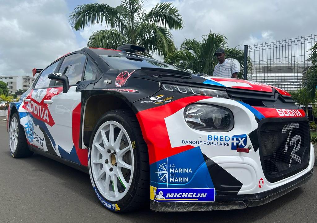 Aprés les habituelles vérifications administratives et techniques du jeudi et la mise en parc fermé, tous les équipages se sont rendus à la présentation du rallye, un petit évenement à lui seul et assez unique: » Au départ, l’organisateur nous présente le rallye, rappelle les règles de sécurité, le réglement, détaille la journée du vendredi avec ce prologue non chronométré dans les rues de Fort-de-France. En 2019, 23 000 personnes avaient fait le déplacement, et cette année le prévisionnel grimpe à près de 30 000 spectateurs ! Alors pour des raisons de sécurité qu’impose une spéciale en ville avec toute cette foule, il a été choisi de faire plutôt une démonstration bon enfant sans soucis du chrono. » A la manière de l’ERC, la distribution des heures de convocation se fait sous forme de show: » Les équipages descendent un par un sur la scène à l’entente de leur nom, récupère ses numéros, l’heure de convocation, c’était très sympa. Ca nous, enfin surtout moi, permis de rencontrer la quarantaine d’équipages engagés car depuis le début de mon aventure, nous avons dû faire les reconnaissances en marge pour répondre aux sollicitations extérieures. »