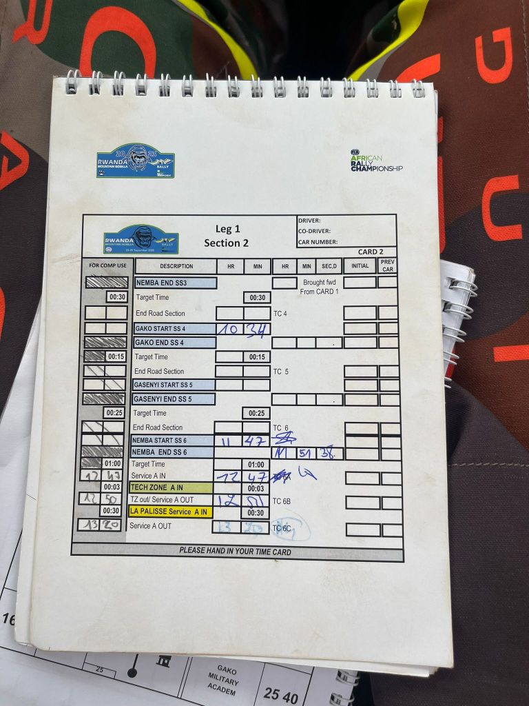 «  La journĂ©e ne fut finalement pas trĂšs compliquĂ©e dâun point de vue logistique ou timing car le rallye se passe dans une base militaire Ă la frontiĂšre avec le Burundi, prĂšs de Gasenyi. Toutes les spĂ©ciales sont trĂšs rapprochĂ©es, parfois il y a Ă peine 500m entre un point stop et le prochain CH. Tout se fait largement en une journĂ©e. Ce qui mâa demandĂ© beaucoup plus de travail et dâadaptation ce sont les notes. Jâai du comprendre puis mâhabituer au systĂšme de Jas, qui peut paraitre «simpliste» voir succinct pour nous europĂ©ens. Il nây a pas tous les dĂ©tails comme on aurait lâhabitude mais plutĂŽt une direction Ă maintenir sur la piste. Une sorte d’Ă©volution de ce quâon peut entendre en rally-raid. On sâadapte par exemple aux difficultĂ©s de la route comme des tranchĂ©es voir des ravins creusĂ©s par les pluies. On dit alors de rester Ă gauche, droite ou au milieu pour Ă©viter de tout casser une fois en course. Câest trĂšs dĂ©routant pour un copilote car il nây a pas de liaisons entre les virages, ni de distance et pour se caler vous imaginez la difficultĂ©, surtout si on voit peu la route. Le pilote fait beaucoup au visuel et Ă lâinstinct. Jâai apprĂ©ciĂ© lâouverture de Jas pour que je puisse apporter de la prĂ©cision et de la consistance dans ses notes et il Ă©tait conscient que cela serait bĂ©nĂ©fique pour tous les deux. Jâai par contre abandonner lâidĂ©e dâappliquer tel quel les standards europĂ©ens sur ce type de rallye. »