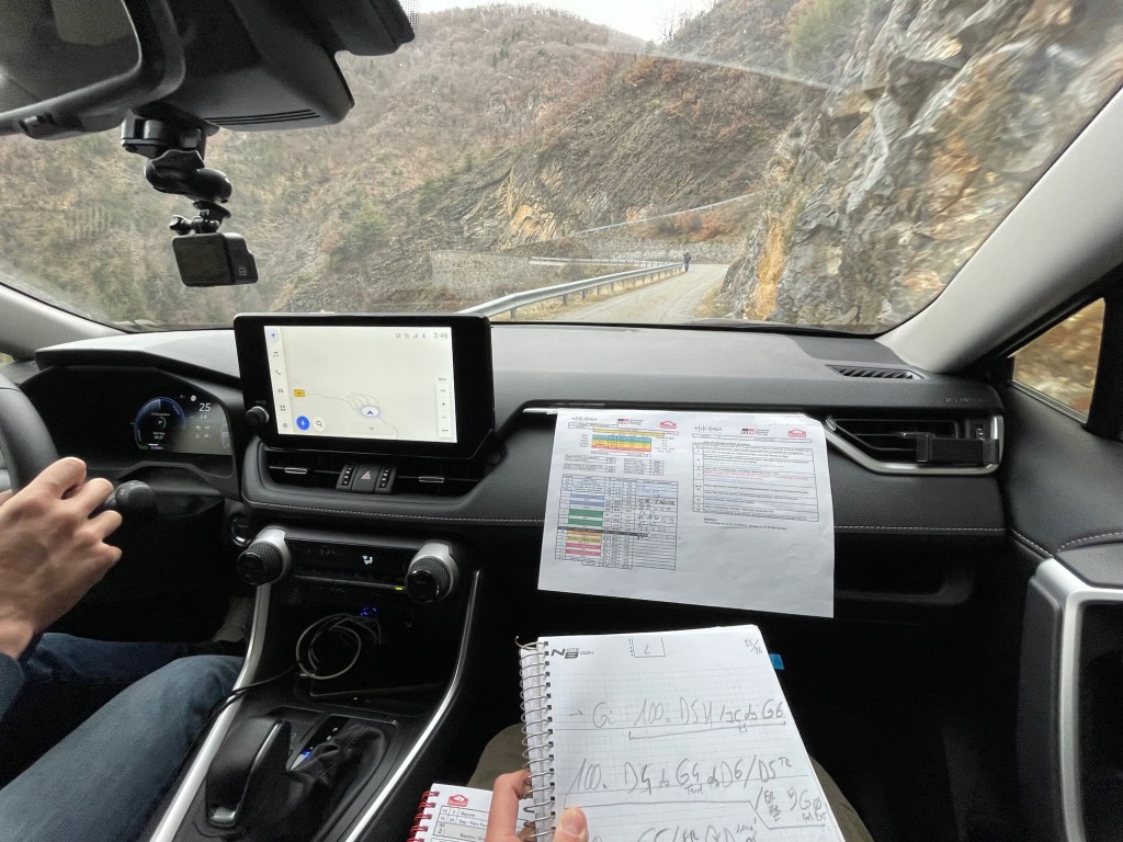 Lors de la préparation de ces journées de repérage, je dois composer avec le planning de l’ACM qui nous impose par exemple des réunions sécurité le mercredi, la préparation du shakedown, l’installation dans notre voiture, nous avons également eu fait des spéciales tests avant le vrai shakedown pour former et échauffer une partie du personnel. Mon but était donc de tout faire rentrer en 2 jours et non 3 pour avoir un mercredi réservé aux autres activités. L’avantage c’est que nous avons déjà certains chronos en note dans lesquels nous ne passons qu’une fois et que nous sommes totalement libre dans le choix des spéciales, du nombre de passage, du bouclage. Nous sommes pour ainsi dire transparents. Un gain de temps évident. J’essaye d’être parfois en décalé du programme imposé des équipages pour ne pas trop les perturber ou faire des reconnaissances moins encombrées. Même si nous aimons bien nous retrouver au milieu de la caravane pour profiter aussi de l’ambiance et croiser les amis. Cette année fut bien maigre en ce sens car même en le voulant, nous n’avons croisés presque personne.