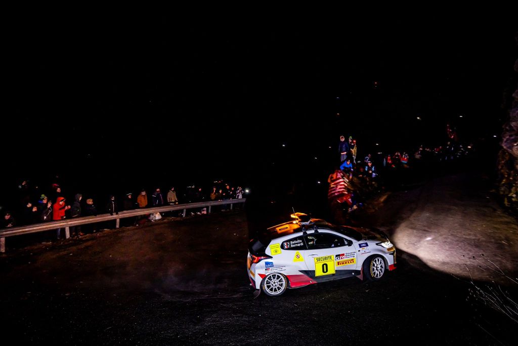 Nous arrivons sur La Bollène vers 12:30 et bouclons notre seul passage de recos de l’ES17 en à peine 20min. Un passage de contrôle sur une spéciale que nous connaissons par coeur et qui n’a pas changée d’un yota. Pour la première fois de ma vie, nous nous arrêtons pour manger au sommet avant de redescendre sur Monaco. A 13h et 1600m d’altitude il faisait 14°C … Manger en terrasse en plein mois de Janvier, peu banal et pas une trace de neige même à l’ombre bien cachée. La longue liaison vers le Moulinet et Sospel me rappelle l’édition 2014, ma première fois comme copilote sur ce mythe en compagnie de Guillaume Tardy, la fusée de la Haute Loire. Nous arrivons à la Brasca, la zone de stockage de toute le matériel et des véhicules de l’ACM à 15h, pour récupérer la #0 qui nous attend sagement. Autant dire que niveau timing nous n’avons plus bien de marge avant le départ. On se change en vitesse et on rempli le coffre de notre Yaris avec nos affaires que nous déchargerons à la TFZ de Digne les Bains.