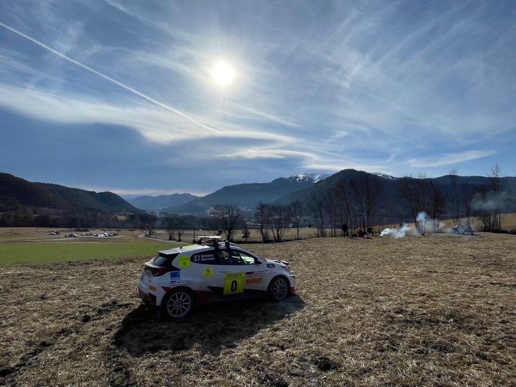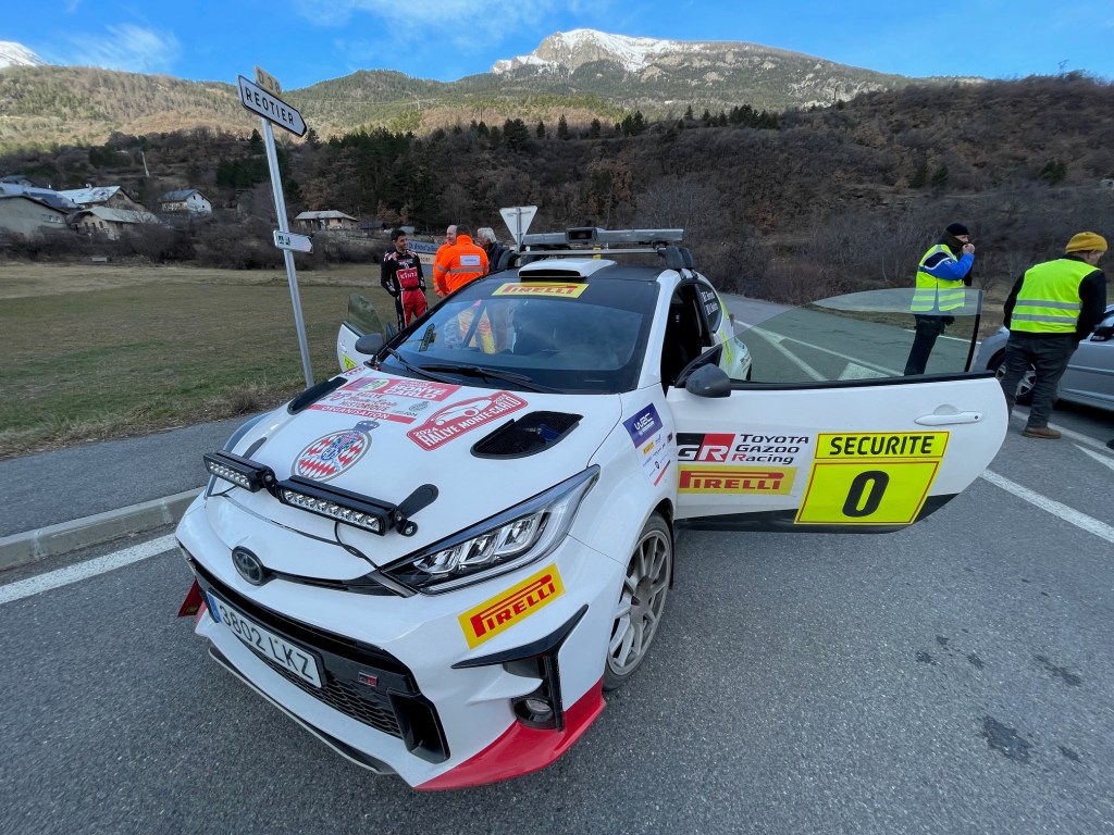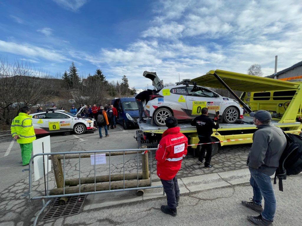Dernière spéciale de la boucle, l’ES5/8/15 de la Bréole – Selonnet. Là encore, un chrono bien connu, dans différentes versions, de jour, de nuit. C’est aussi la spéciale la plus proche pour une partie de ma famille qui vit du côté de Seynes et que je croise à cette occasion. Depuis ce matin, on ressent à la radio une tension constante pour maitriser l’afflux de spectateurs et leurs placements. Au moment de se casquer, il y a toujours des points critiques donc on s’attend à avoir un peu de travail. Malheureusement, après 8,9km exactement, notre progression est stoppée nette par une rupture mécanique. Nous sommes en descente et le moteur n’entraine plus les roues. Les vitesses passent mais nous sommes en roue libre. La Toyota Yaris version caisse à savon. Nous n’hésitons pas longtemps et nous nous garons dans la première zone visible en sécurité. Pendant que Florian tente de comprendre, je préviens la direction de course que nous rencontrons un problème, que nous ne gênons pas mais que nous ne pouvons pas repartir. Rapidement, nous comprenons que nous ne pourrons rien faire sur place et nous confirmons notre arrêt pour le moment. Etant donné que la première voiture n’était pas encore partie, le directeur d’épreuve décide d’envoyer notre doublure, la 0 spare, pour ouvrir la spéciale à notre place. Ce n’était plus arrivé depuis 2021 lorsque nous avions cassé un cardan sur la ligne de départ à Puget Thénier lors de la dernière journée de course. On passe des coups de fil à l’équipe, j’ai le responsable sécurité qui me pose quelques questions mais nous sommes impuissants. Peu de temps après nous commençons à recevoir des messages de nos proches qui ont entendu que nous étions apparement sortis et pour cause: c’est malheureusement Marc et Jonathan qui se sont fait piéger à 4km de l’arrivée dans une zone verglacée que nous ne pouvions pas prévoir sans ouvreurs.